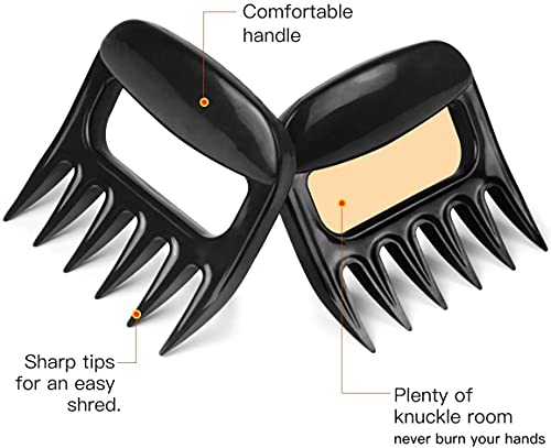 Tijdbesparend – berenklauwen zijn het antwoord op perfect gehakt vlees zonder de rommel en hoofdpijn van messen en vorken. Pak en versnipperen varkensvlees, kip, rundvlees en meer met de ultrascherpe klauwen en vermijd daarbij olie- of verbrandingsproblemen als je levensmiddelen met de hand snijdt.