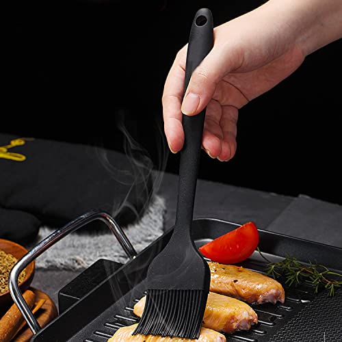 Siliconen kwast, 25,5 cm keukenkwast, BBQ, grillkwast, hittebestendige bakborstel voor vlees, dessert, bakken (zwart)