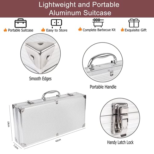 MAMIZO 18 stuks BBQ grillbestek set van hoogwaardig roestvrij staal grillaccessoires voor mannen cadeau verjaardag koffer, perfecte grillgereedschapset voor tuin camping