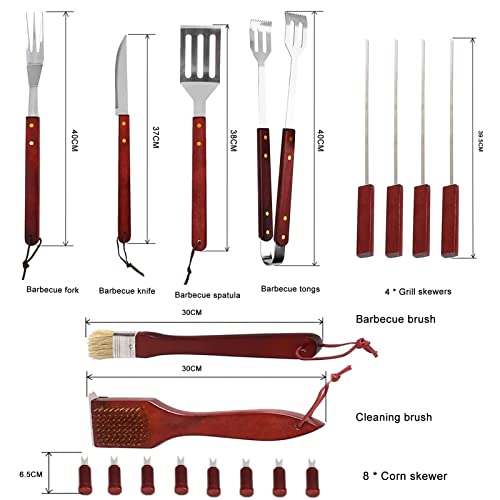 Exclusief cadeau: roestvrij staal met mahoniehandvat, het prachtige uiterlijk is een uitstekend cadeau voor grillliefhebbers, of u nu beginner of grillmeester bent, u kunt gemakkelijker en comfortabeler genieten van de grilltijd. Perfect als cadeau voor Vaderdag, Valentijnsdag, Kerstmis en meer.