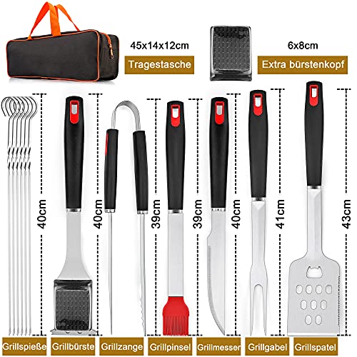 Specification: Herogo 14-delig grillbestek, roestvrij stalen barbecue-accessoires voor mannen, cadeau, grillbestek-set met draagtas, metalen grillspiesen, grilltang, grillspatel, grillvork en grillborstel voor barbecue
