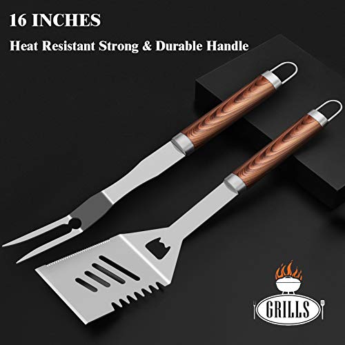 [HOGE KWALITEIT ROESTVRIJ STAAL] — Onze 26 stuks grillgereedschapsset gemaakt van professionele kwaliteit roestvrij staal dat roestbestendig, duurzaam en duurzaam, alle barbecuegereedschappen zijn extra dik en houden goed na veel gebruik zonder buigen of barsten. De tang en spatel zijn allemaal zwaar en toch licht genoeg om te hanteren met voedsel op hen, Ontworpen met langwerpige handgreep om veilige afstand van vuur te houden zonder zich zorgen te maken over verbranden.