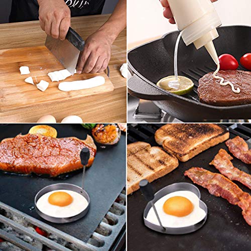 【Exclusieve koekenpan kookset 】 – De complete frituurspatel set voor verschillende kookdoeleinden wordt geleverd inclusief 2 barbecuepatels, hamburger spatel, spatel, schraper, BBQ clip, schuine grillspatel, barbecueborstel, 2 eierringen, 2 flessen en handkoffer!