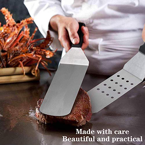 Yuning bbq spatel set, 13 Stks Professionele Heavy Duty RVS Grillplaat Spatel & Schraper BBQ Tool Set, met Handvat in Draagtas, Geweldig voor Platte Top Grill Koken Camping Teppanyaki