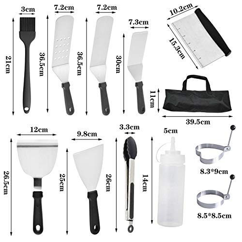 Specification: Yuning bbq spatel set, 13 Stks Professionele Heavy Duty RVS Grillplaat Spatel & Schraper BBQ Tool Set, met Handvat in Draagtas, Geweldig voor Platte Top Grill Koken Camping Teppanyaki