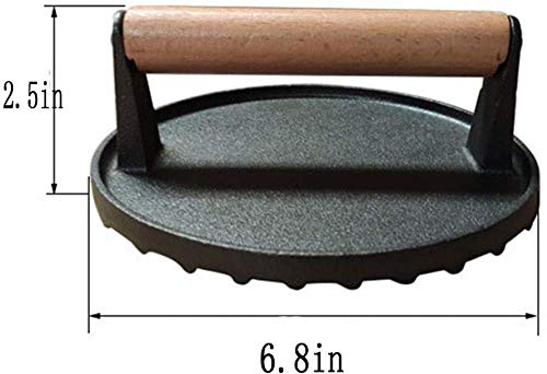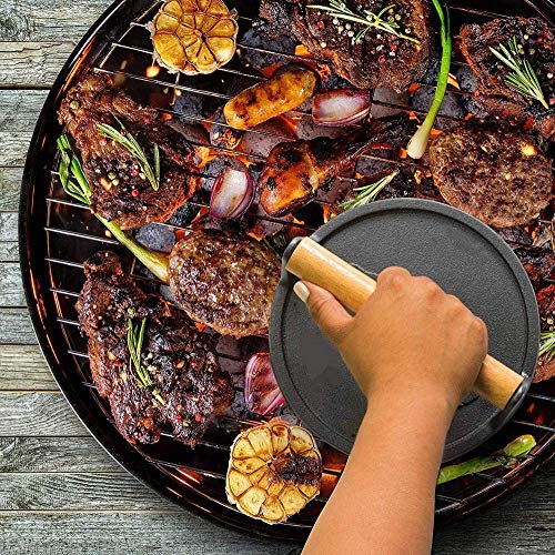 Specification: Voorgekruide ronde grillaccessoires, gietijzeren grillpers, met gemakkelijk vast te pakken handgrepen, perfect voor bacon, hamburgers, panini en steak