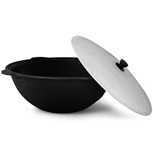 Specification: NAMANGAN Kazan Zbeekse braadpan van gietijzer, 6 l (ronde bodem), Kazan Oezbeekisch, Cast Iron KESSEL Uzbek, camping Usbek Asia Wok, pan met aluminium deksel
